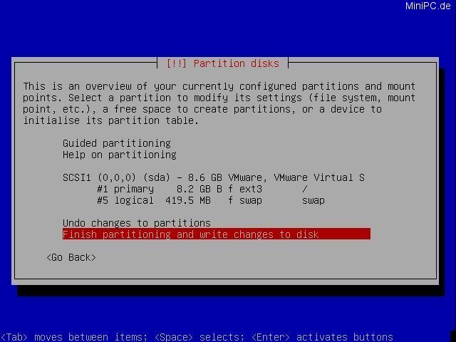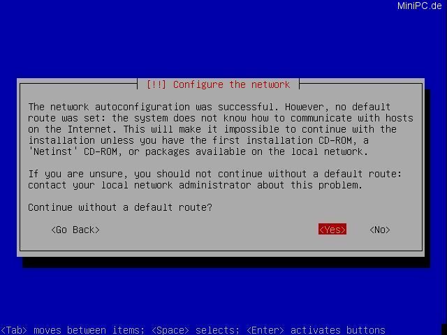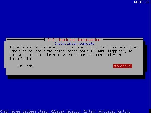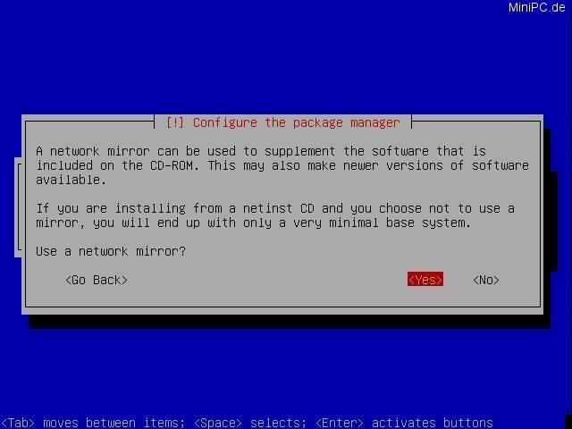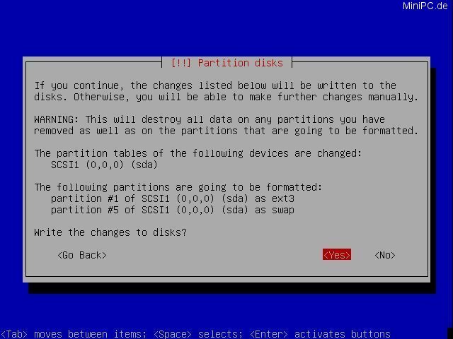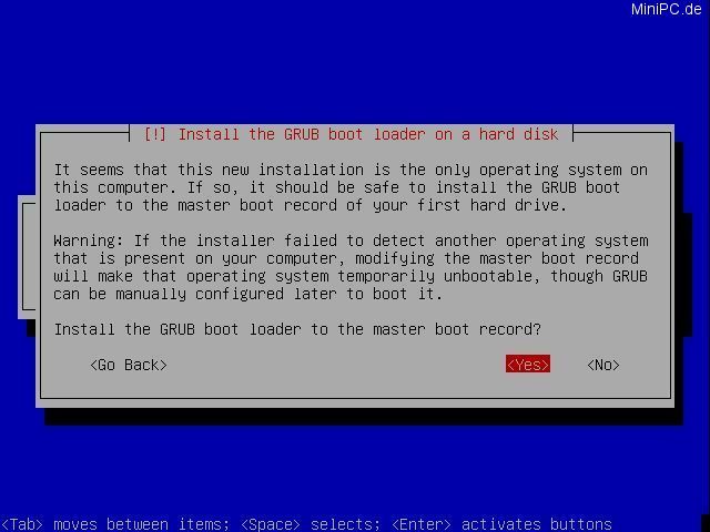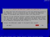 At the last screen Debian will ask if "Grub" shall be used as Boot-Loader. After your confirmation with "Yes" the last step